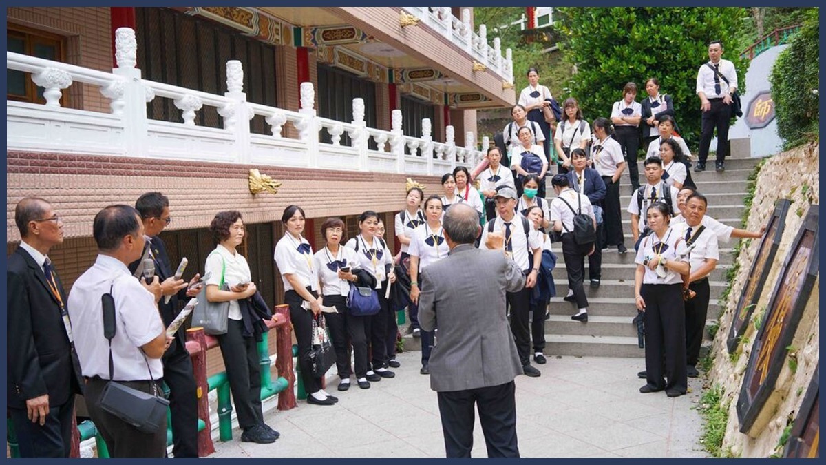 下午,道親們在無極殿與祖師祠獻供,並於鄭講師的導覽中,深刻體悟「天恩師德,尊師重道」的修道根本。當微風拂動風鈴,清脆的鈴聲彷彿是師尊、師母與老前人慈悲的回應,令人深感慰藉。