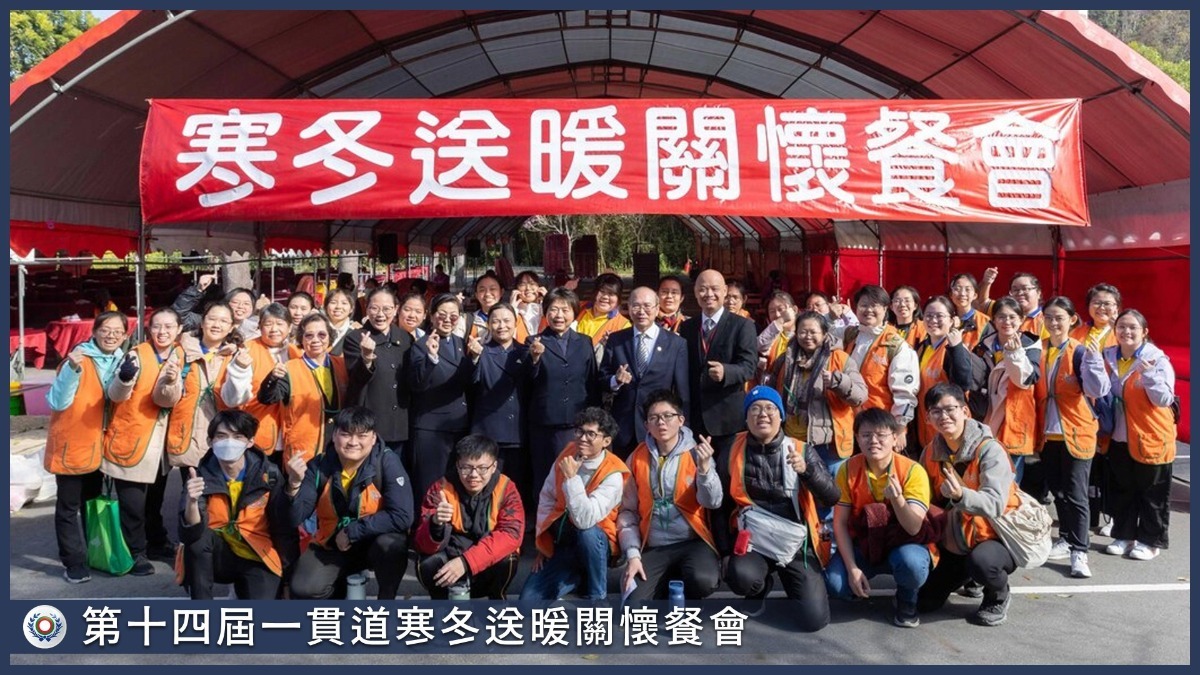 2026年1月24日,第十四屆「大手牽小手・愛心共攜手」一貫道寒冬送暖關懷餐會,於台中市霧峰區白陽聖廟隆重舉辦。活動席開150桌,廣邀身心障礙者、低收入戶家庭、獨居長輩、社區長者、街友、更生人、兒少安置機構等20個社福機構、社區發展協會與關懷據點,共約1350位貴賓齊聚一堂,在歲末寒冬中圍爐團聚、共享佳節溫暖。