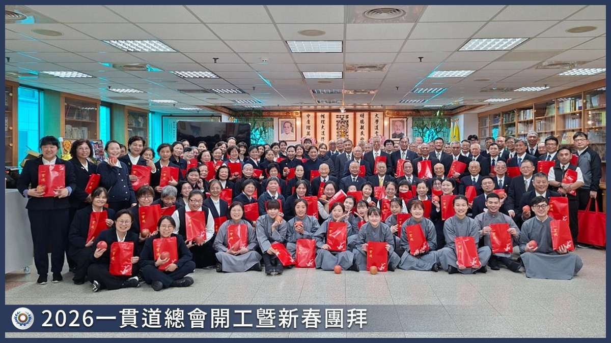 115年2月21日,歲次丙午年,春氣初動,萬象更新。一貫道總會隆重舉辦開工暨新春團拜,簡理事長、陸副理事長、謝副理事長,以及各理監事、各組線代表等一百多位前賢齊聚一堂,莊嚴的獻供禮後,大家主敬存誠,齊向 老母及諸天仙佛拜年,並互道新年恭喜,展望新的一年。